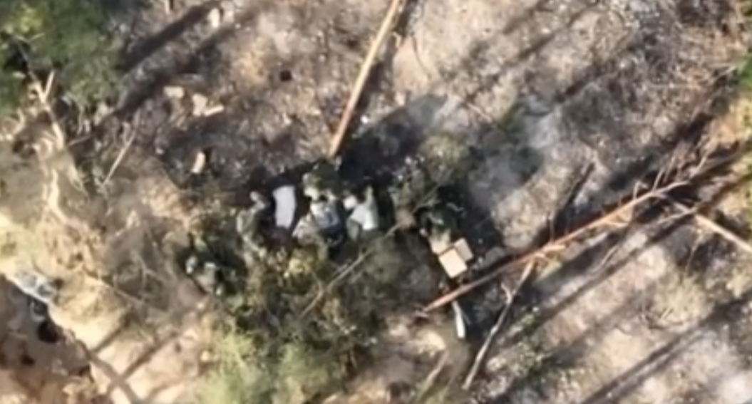 На них можна побачити, як підрозділ окупантів атакували за допомоги невеликого дрона з легким і недорогим боєприпасом.