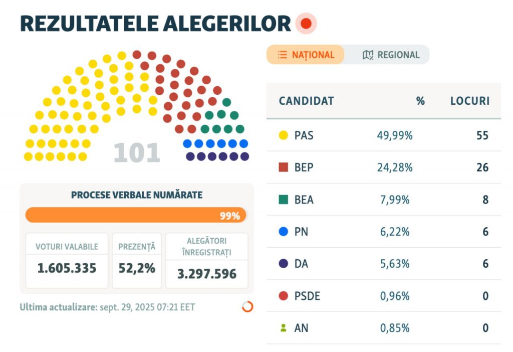 28 вересня у Молдові пройшли парламентські вибори. Електоральний поріг проходять 5 партій і блоків.