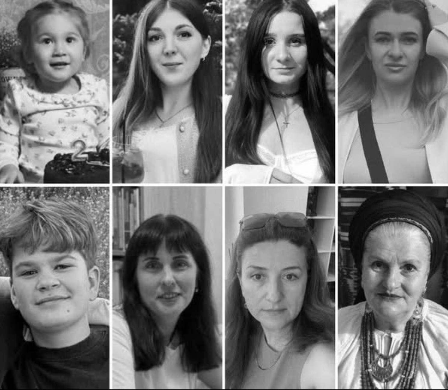 Серед людей, чиї життя забрала російська атака 28 серпня: 2-річна Ангеліна, її 24-річна мама Надія, Марина Гришко, 17 років, студентка, Яна Шаповал, мама 10-річного хлопчика, Назарій Коваль, 14 років, школяр, Оксана Процюк — лікар фізичної та реабілітаційної медицини, невролог, Олена Чала, Віра Тулупова — учасниця Ансамблю народної пісні та побутового танцю Громиця.