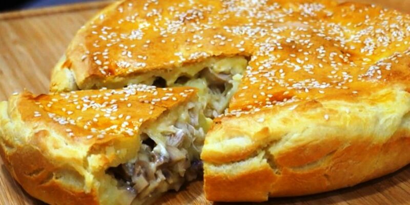Ситний і апетитний пиріг з смачною начинкою! Дуже смачний пиріг з дуже смачною начинкою з курячого м’яса і грибів!
