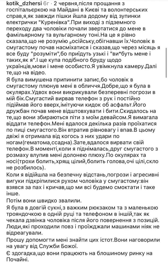 Двоє проросійських чоловіків посеред вулиці у Києві(!!!) напали на дівчину за проукраїнську позицію.