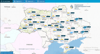 У неділю, 24 листопада, на сході та південному сході України пройде мокрий сніг та дощ, місцями можливе налипання мокрого снігу та ожеледиця. На Закарпатті можлива ожеледь, а в Карпатах сильний сніг.