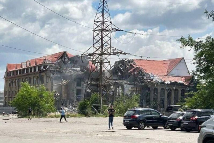 З’явилися кадри, що свідчать про наслідки атаки по нафтобазі РФ у Луганську. Будівля, куди поцілили ракети, зазнала серйозних руйнувань.