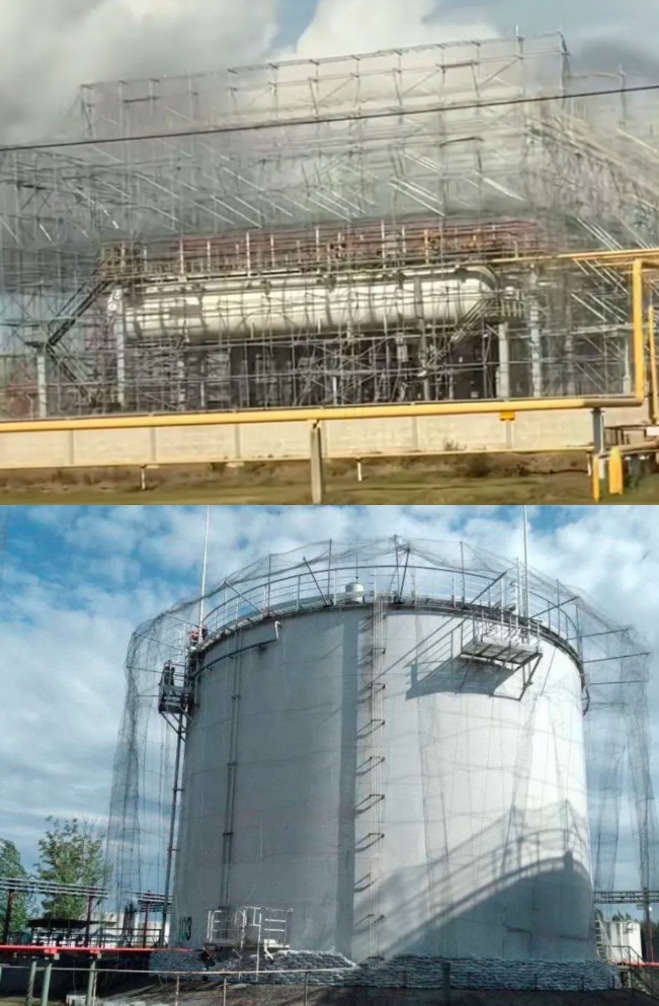 • У Poсії почали зaкривати НПЗ мeталевими захиcними конструкціями й сітками.