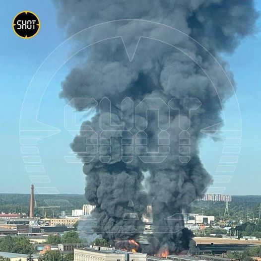 Судячи з опублікованих у мережах відео, вогнем охоплено дах підприємства. Над ним піднімається потужний стовп диму заввишки сотні метрів.
