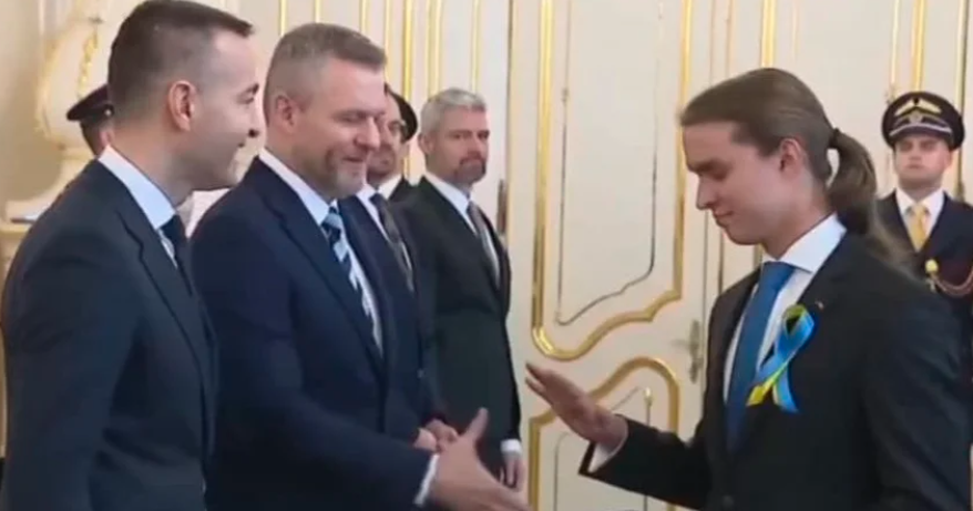 Коли міністр запропонував Оманіку потиснути руку словацькому президенту Петеру Пеллегріні, школяр відмовився, хоча президент вже простягнув долоню.