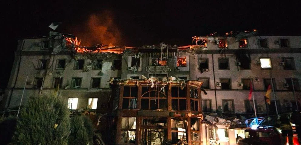 Російська ракета влучила в п’ятиповерховий готель у Кривому Розі, спричинивши пожежу.
