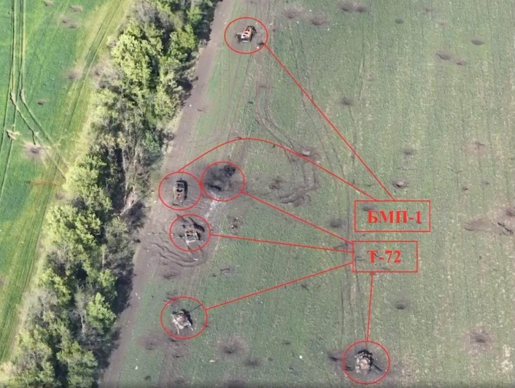 Після нанесення вогневого ураження по російській механізованій колонні, по меншій мірі було знищено декілька танків Т-72 і 2 БМП противника.