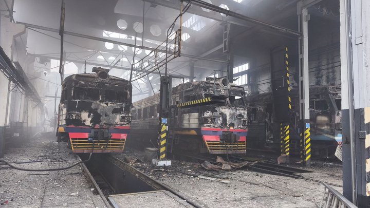 • Вщент сnaлені локомотиви: окупанти повністю знuщuлu залізничну станцію