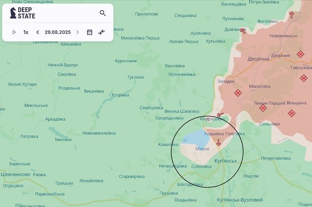 За оновленими даними мап DeepState станом на 29 серпня, підрозділи Сил оборони України успішно витіснили ворога з села Мирне поблизу Куп’янська Харківської області. Раніше окупанти контролювали цю ділянку, що давало їм можливість впливати на трасу до міста.
