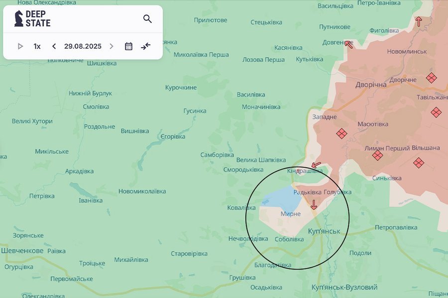 За оновленими даними мап DeepState станом на 29 серпня, підрозділи Сил оборони України успішно витіснили ворога з села Мирне поблизу Куп’янська Харківської області. Раніше окупанти контролювали цю ділянку, що давало їм можливість впливати на трасу до міста.
