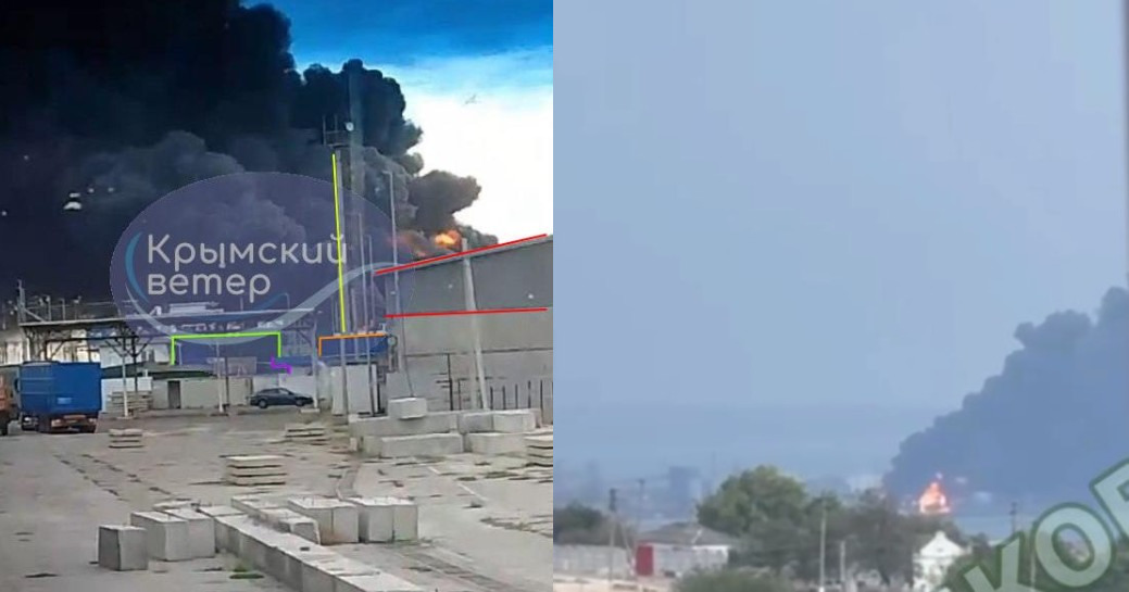Пожежа в порту “Кавказ” після влучання / Фото “Крымский ветер”