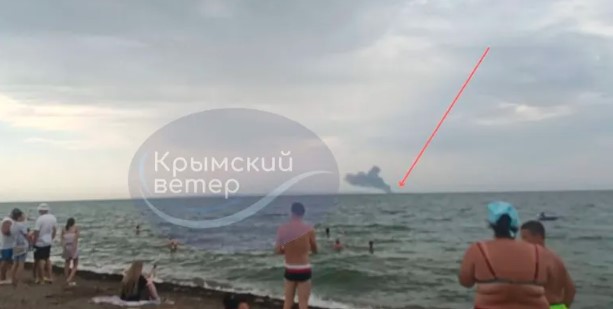 Російські відпочивальники споглядають чорний дим із ураженого порту / Фото “Крымский ветер”