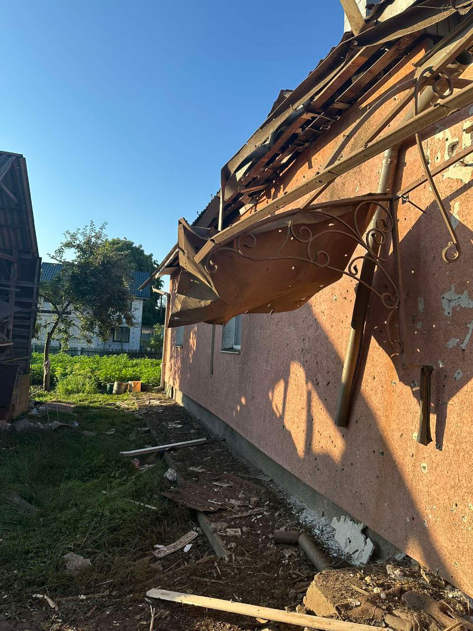 Пошкоджений через російський обстріл будинок в одному із сіл Івано-Франківської громади, 21 липня 2025. Facebook/Руслан Марцінків