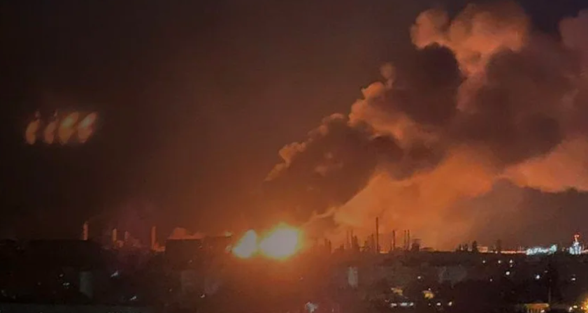 Як зазначається, влучання ударних БпЛА спричинили на заводі сильні пожежі.