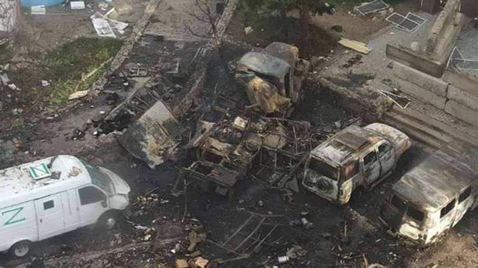 Наразі відомо, що у повітря злетіло три одиниці військової техніки РФ, яка перегороджувала під’їзд до готелю”.