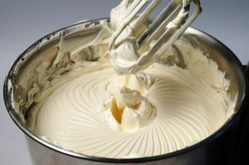 Збиваємо всі компоненти міксером до однорідності і перламутрового кольору близько 3-5 хвилин. Збивайте поки не зіб’ється, і краще на найбільш низькій швидкості.