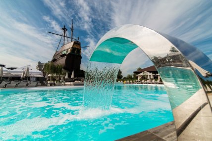 - Готель: понад 50 номерів, включаючи люксові апартаменти та дерев’яні бунгало в парковій зоні.