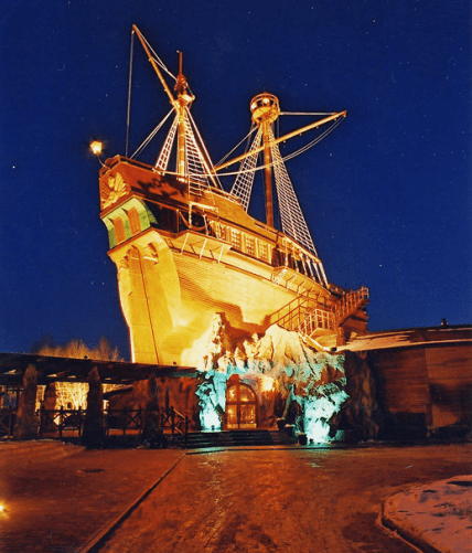 Центральним елементом комплексу є ресторан у вигляді корабля, що ніби “застряг” на піщаному пляжі серед скель. Його інтер’єр ретельно продуманий: хол оформлений у вигляді скелястого гроту з акваріумами, а стеля імітує дерев’яне днище корабля. Барельєфи в стилі індіанських племен, а також копія ацтекського календаря Камінь Сонця додають атмосфери таємничості та історичної глибини.