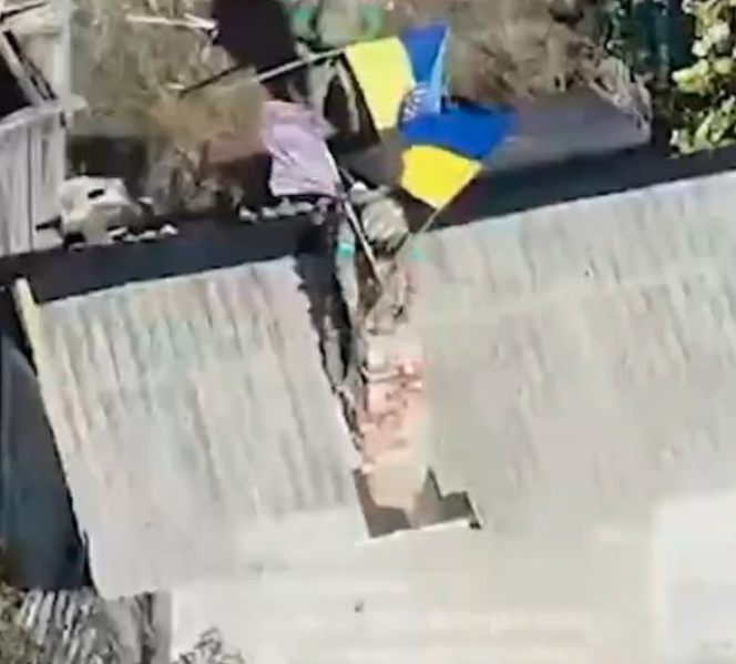 На опублікованому відео видно, як українські воїни встановлюють прапор України та бригади на одному з будинків села.