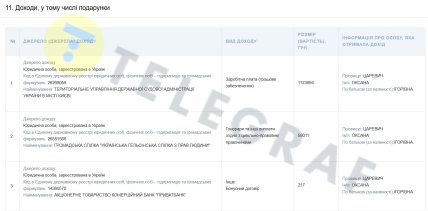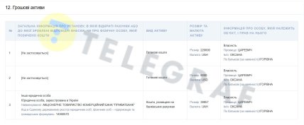 У декларації зазначено, що із готівки вона має 220 тисяч гривень та 8 тисяч доларів, а також банківський рахунок із 40 тисячами гривень.