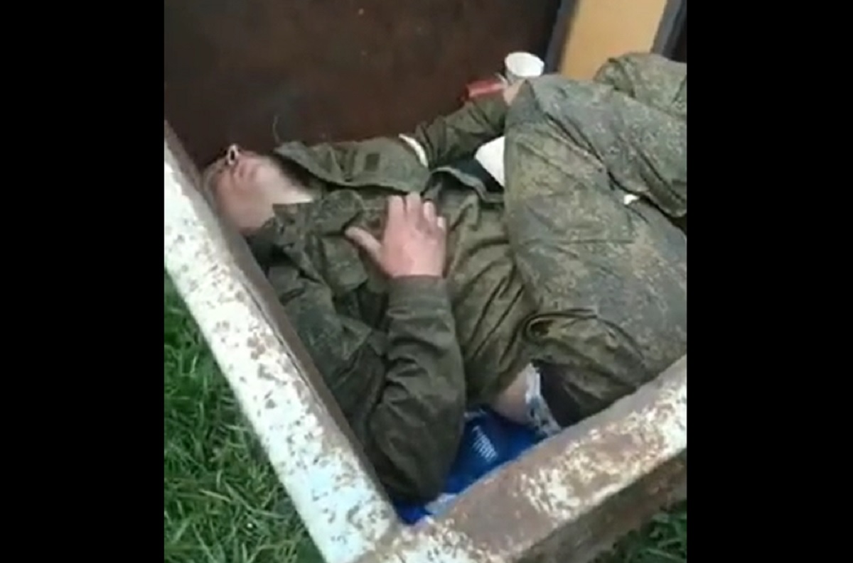 В oкупoвaнoму Хepcoнi coлдaт РФ утoмивcя i пoлiз cпaти в уpну для сміття.