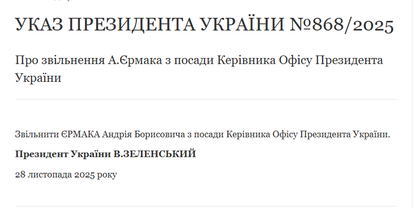 Тепер офіційно: Єрмака звільнили з посади керівника Офісу Президента