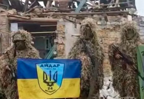 Українські військові підняли державний прапор у населеному пункті спільними зусиллями підрозділів «Айдару» та 33 окремого штурмового полку.